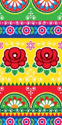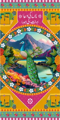 Truck Art is the heart of Pakistan and India. This is colorful and hand-painted on trucks, buses, and rickshaws. It features bold florals, psychedelic patterns, striking animals, and inspiring quotes. This is my signature dynamic style, blending perfectly into creative branding, textile prints, and artistic portraits.