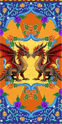 Chinese art, featuring pagodas, dragons, cranes, cherry